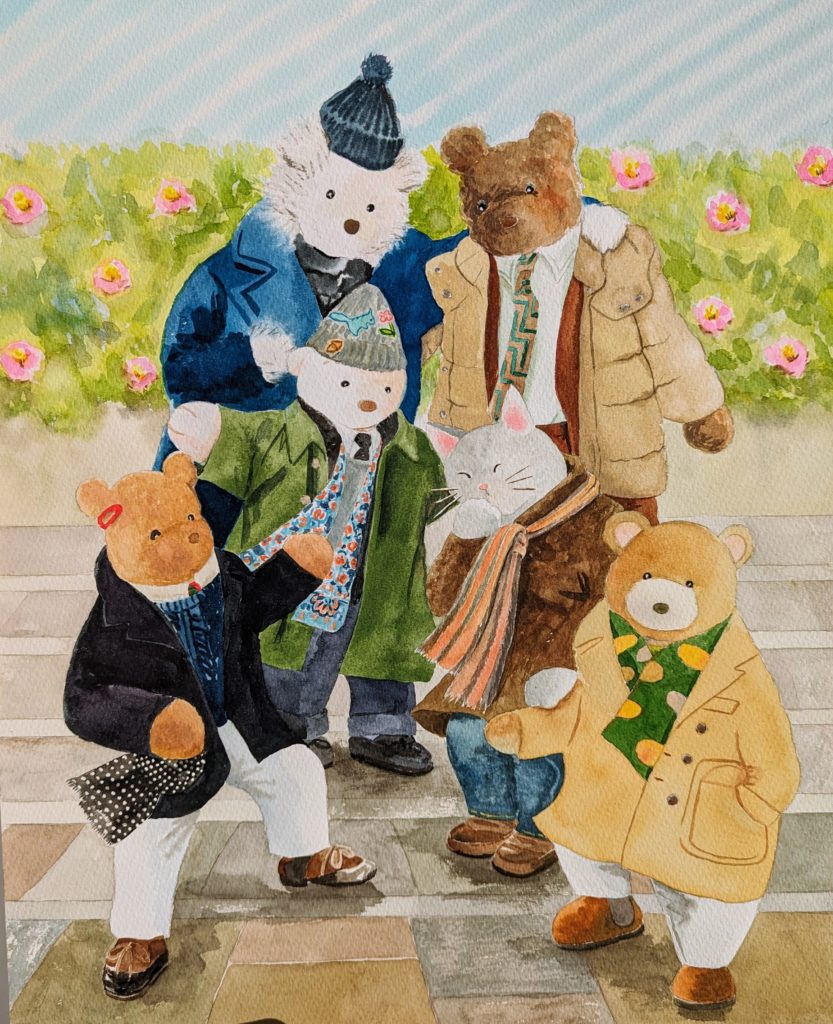 It’s fun to draw fashionable people turned them into bears! By drawing, I realize just how carefully they select colors and different materials to create each look. I’ve come to have great respect for these stylish men.
